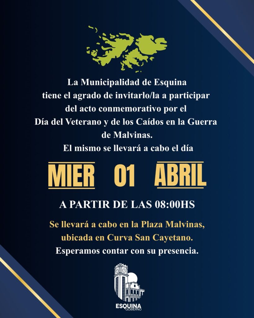 Invitamos a toda la comunidad a participar del acto conmemorativo que se realizará el 1 de abril a partir de las 8:00 hs.
