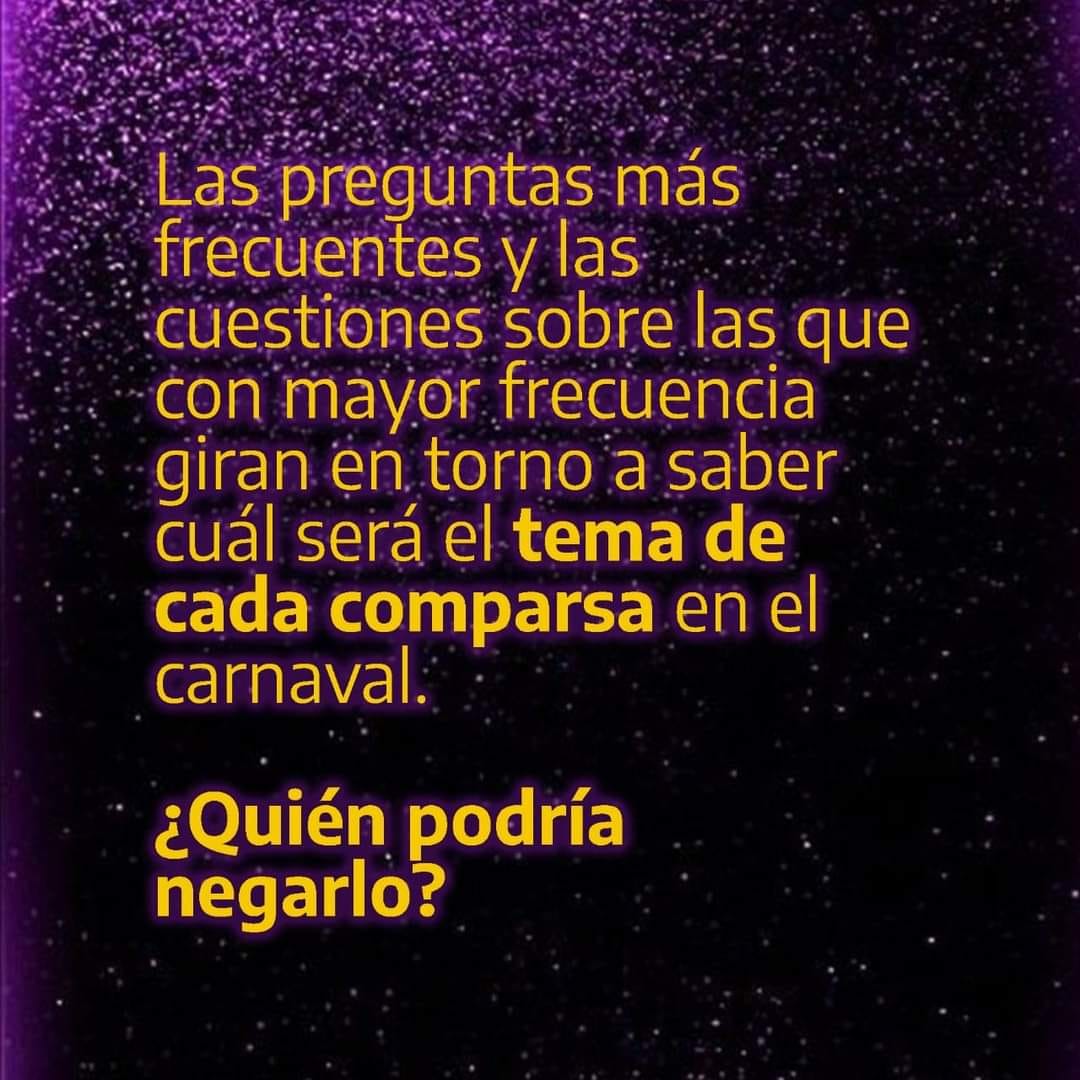 Las preguntas más frecuentes y las cuestiones sobre las que con mayor frecuencia giran en torno a saber cuál será el tema de cada comparsa en el carnaval ¿Quién podría negarlo?