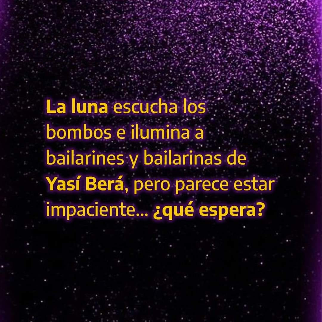La luna escucha los bombos e ilumina a bailarines y bailarinas de Yasí Berá, pero parece estar impaciente… ¿qué espera?