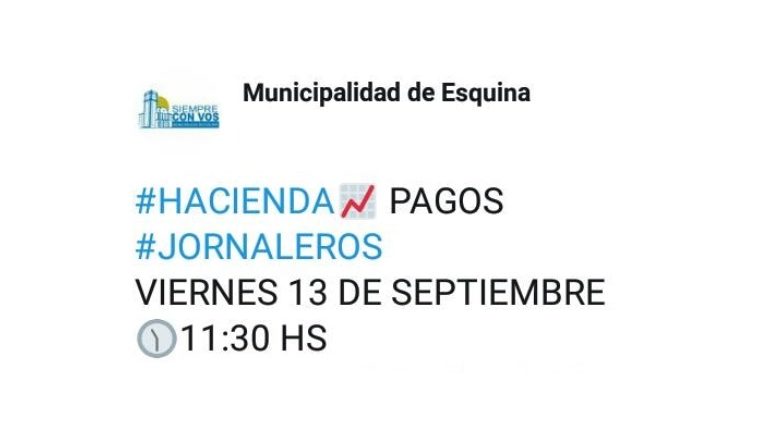 Cumpliendo con los vecinos Municipalidad de Esquina #SIEMPREconVOS SR CONTRIBUYENTECON EL APORTE DE SUS IMPUESTOS ESTO SE REALIZA EN TODOS