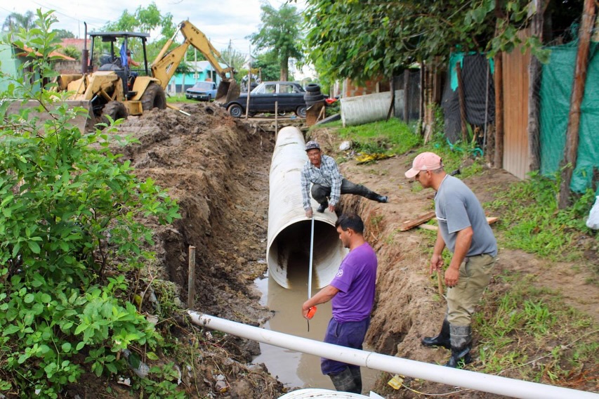 La Municipalidad de Esquina continúa con la colocación de tubos para desagüe pluvial en calle General Paz y en distintos puntos estratégicos de la ciudad.