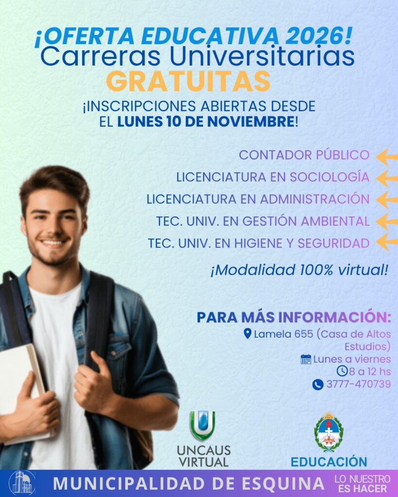 Comienzan las inscripciones a las Carreras Universitarias 100% Virtuales y Gratuitas de la UNCAUS
