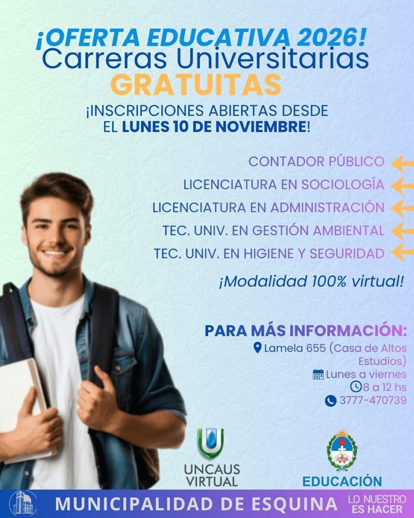 ¡Comienzan las inscripciones a las carreras universitarias 100% virtuales y gratuitas de la UNCAUS!