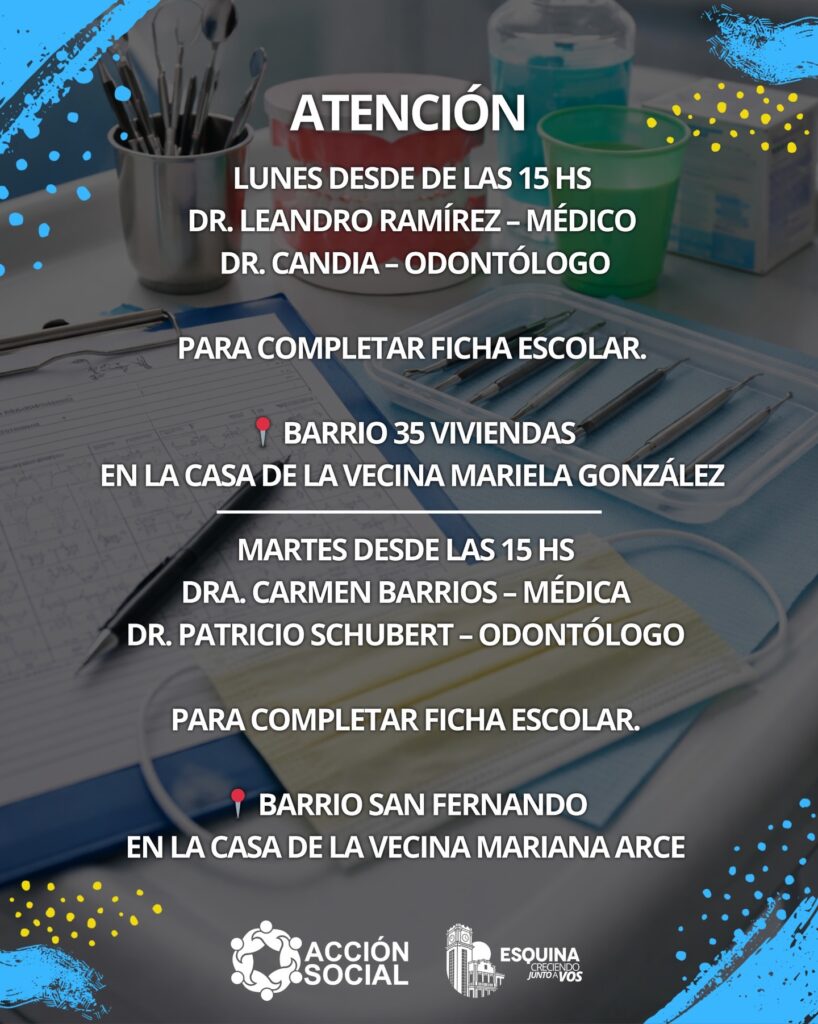 Desde el área de Acción Social acercamos profesionales médicos y odontológicos para que las familias puedan completar la ficha escolar de manera más cómoda y accesible.
