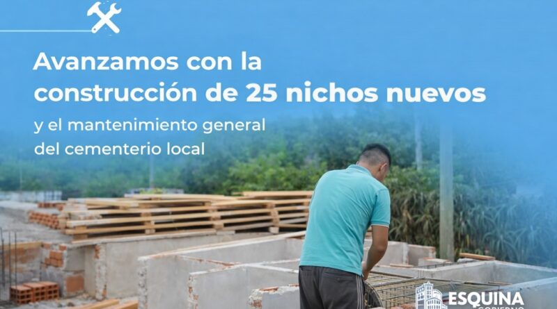 La Municipalidad de Esquina dio inicio a la construcción de 25 nichos nuevos, junto con tareas de mantenimiento general en el cementerio local, con el objetivo de mejorar este espacio para toda la comunidad.