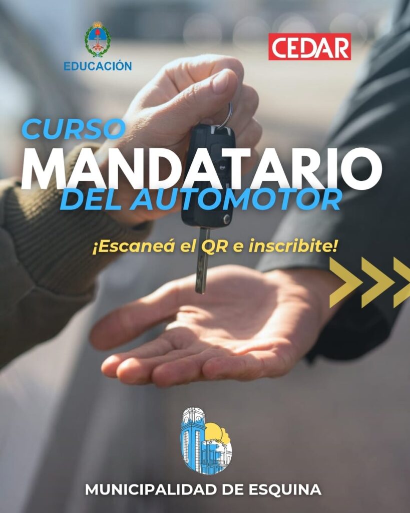 La Municipalidad de Esquina informa que se encuentra abierta la convocatoria para el Curso de Mandatario del Automotor.