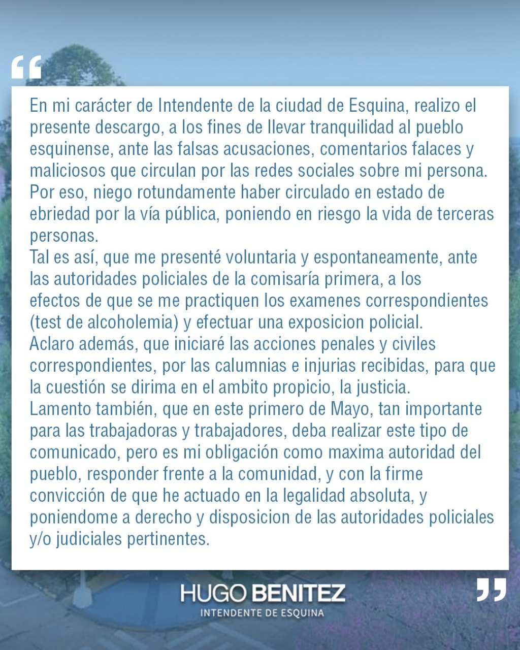 - Municipalidad de Esquina Ejecutivo Municipal Descargo del Sr. Intendente 1 mayo, 20216 mayo, 2021 Municipalidad de Esquina