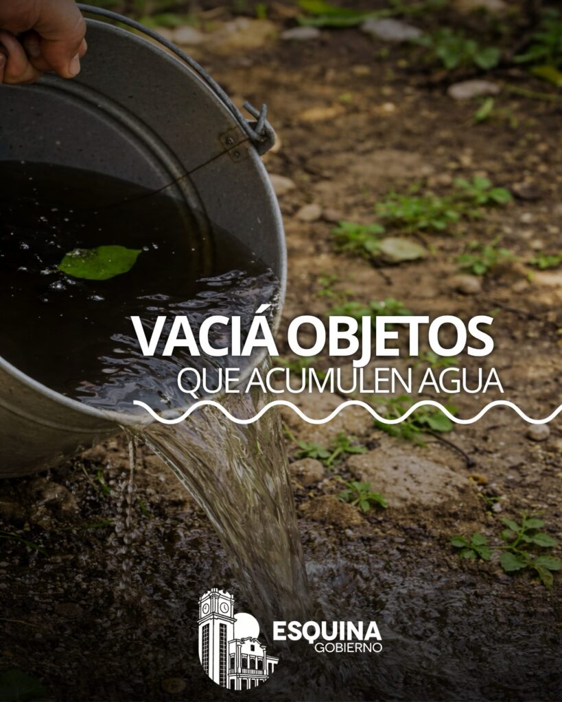 - Vaciá, tapá o girá recipientes que acumulen agua