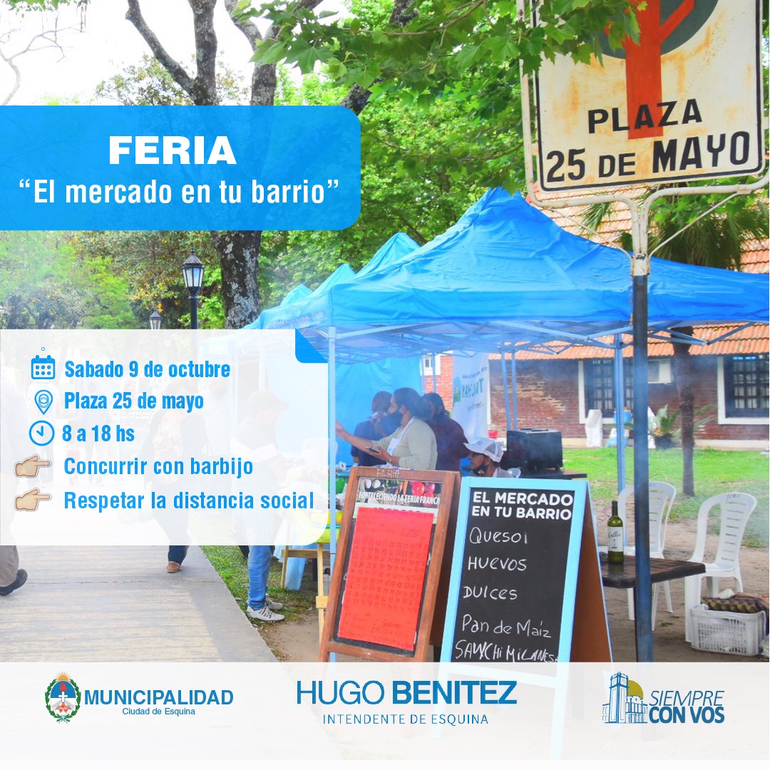 Este sábado 9 de octubre se realizará en nuestra Plaza 25 de Mayo la Feria «el Mercado en tu Barrio»