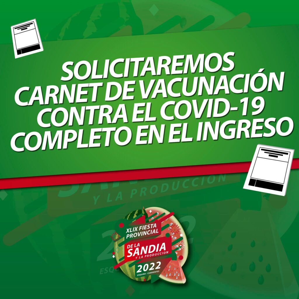 Por el incremento de casos de COVID 19, informamos a todos aquellos que quieran asistir al Festival de la Sandía este próximo sábado 8 de enero, deberan llevar consigo su Carnet de Vacunación (COVID 19) para el ingreso al mismo.