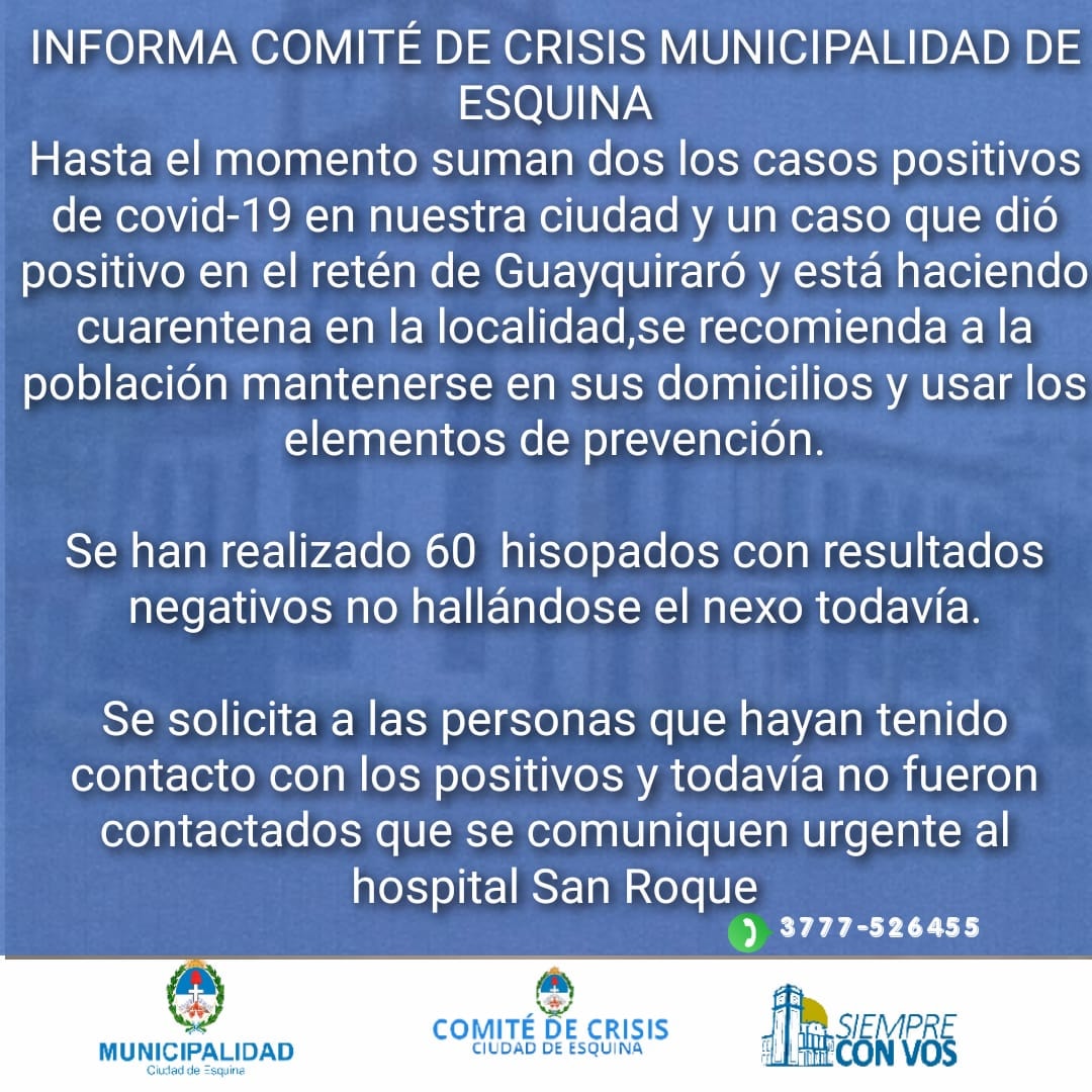 - Municipalidad de Esquina Comité de Crisis Información importante 27 diciembre, 20204 enero, 2021 Municipalidad de Esquina