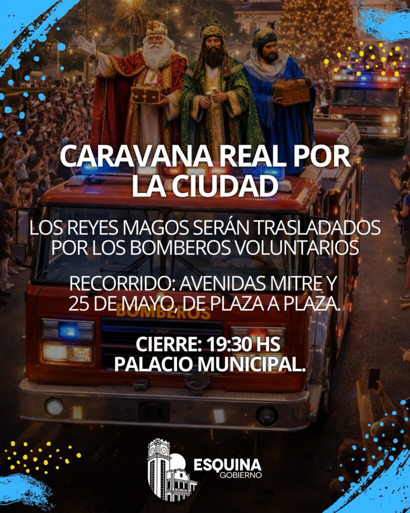 - Municipalidad de Esquina Llegan los Reyes Magos a Esquina 4 enero, 20269 enero, 2026 Municipalidad de Esquina Melchor, Gaspar y Baltazar llegan a nuestra ciudad para compartir una jornada llena de ilusión, alegría y encuentro. Mirá las actividades programadas y vení a disfrutar con nosotros de una noche especial junto a las familias y los más chicos.