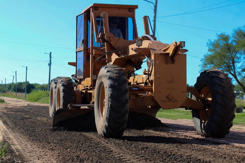 Ya comenzaron los trabajos de arreglo y nivelación de calles en distintos puntos de la ciudad, con la motoniveladora en funcionamiento.