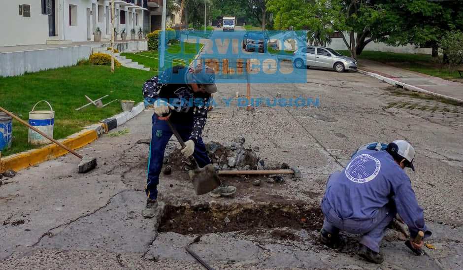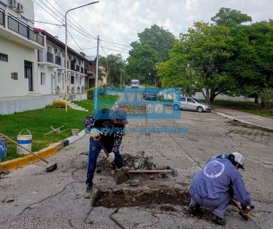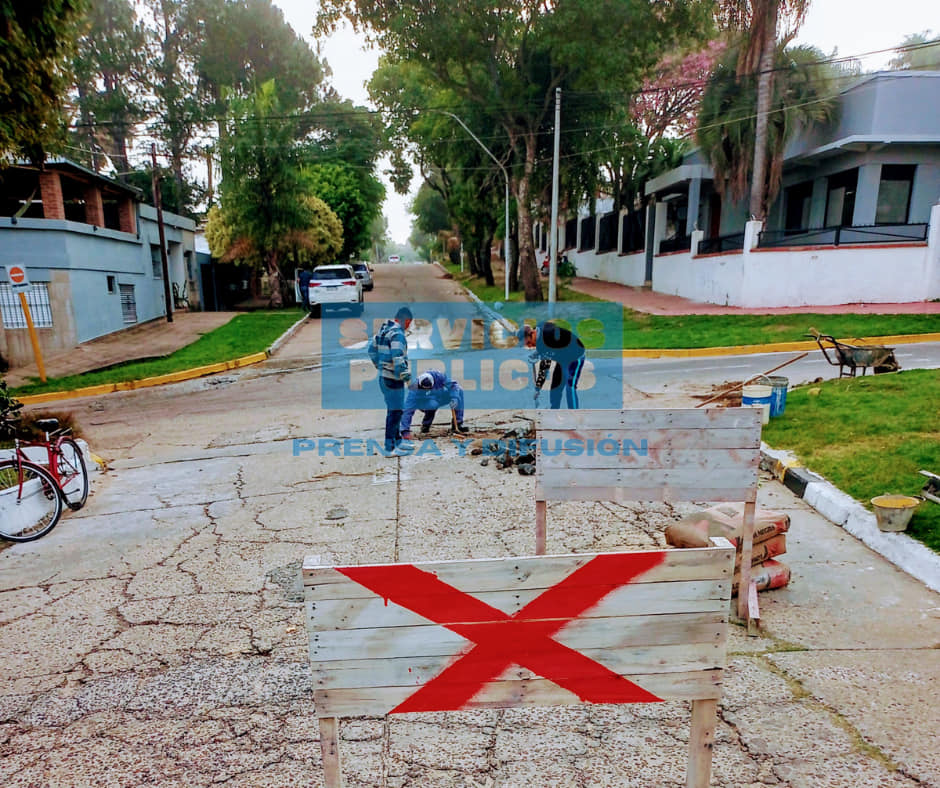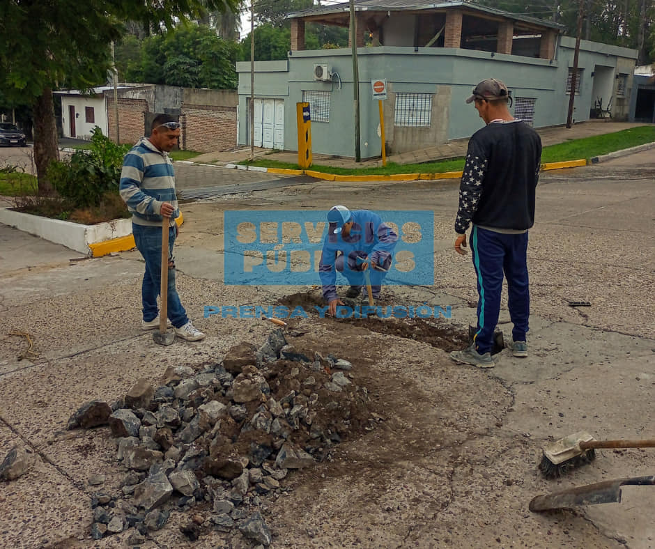A través de dicho programa el personal Municipal de la Dirección de Servicios Públicos Esquina realizan los trabajos de demolición, reposición de base correspondiente y rellenado con hormigón.