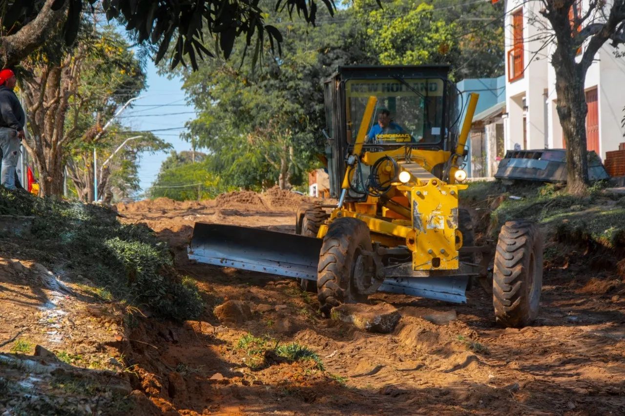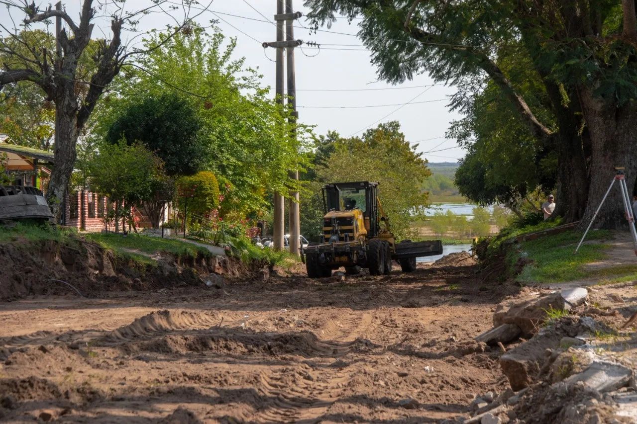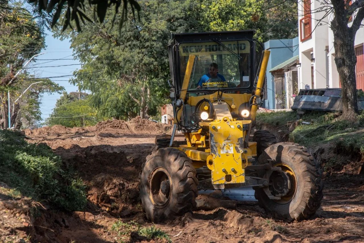 Preparación y nivelado de suelo de la calle Rivadavia para luego pavimentar