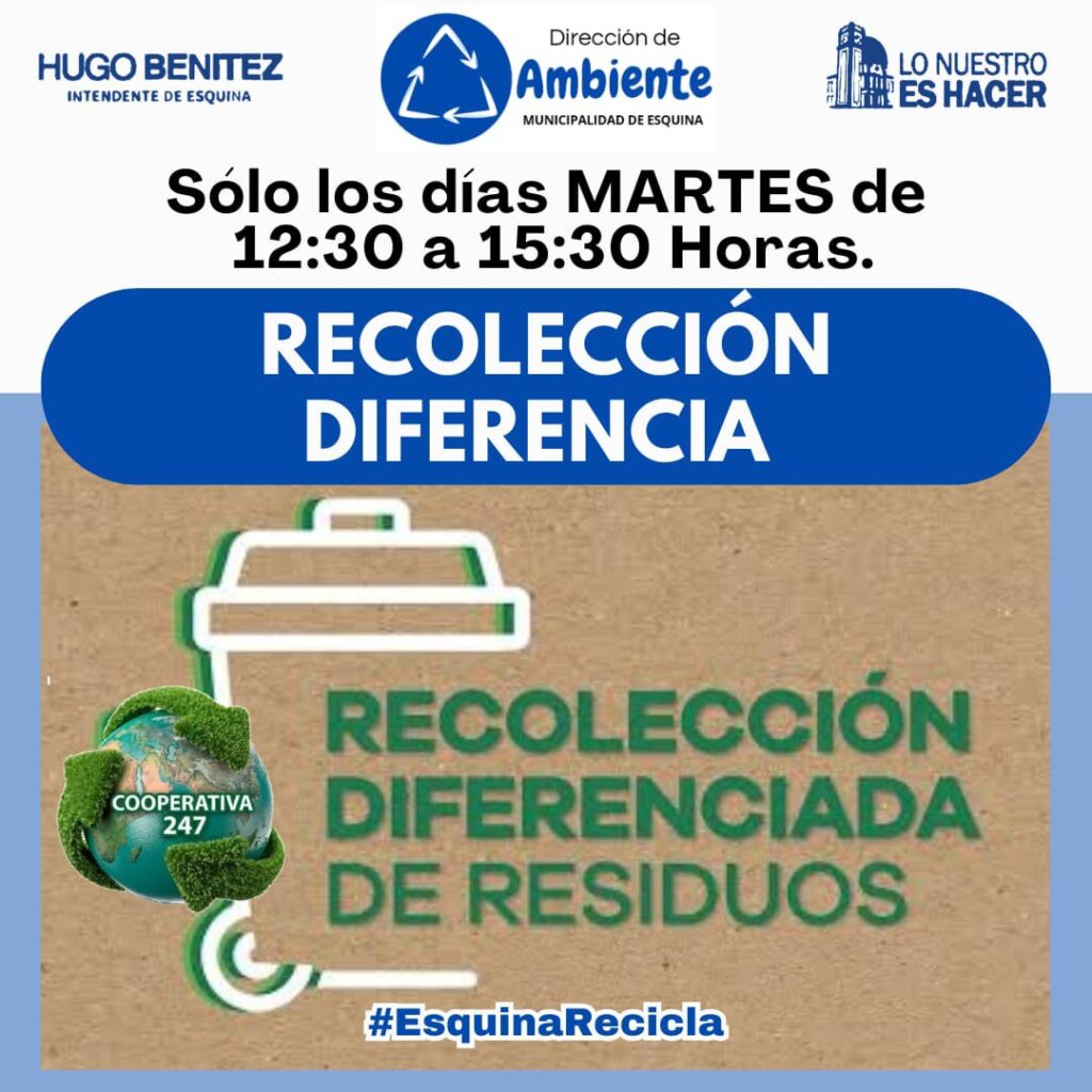 Informamos a los vecinos que la Recolección DIferenciada de residuos se realizará únicamente los días martes.