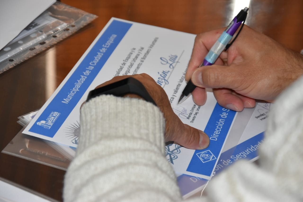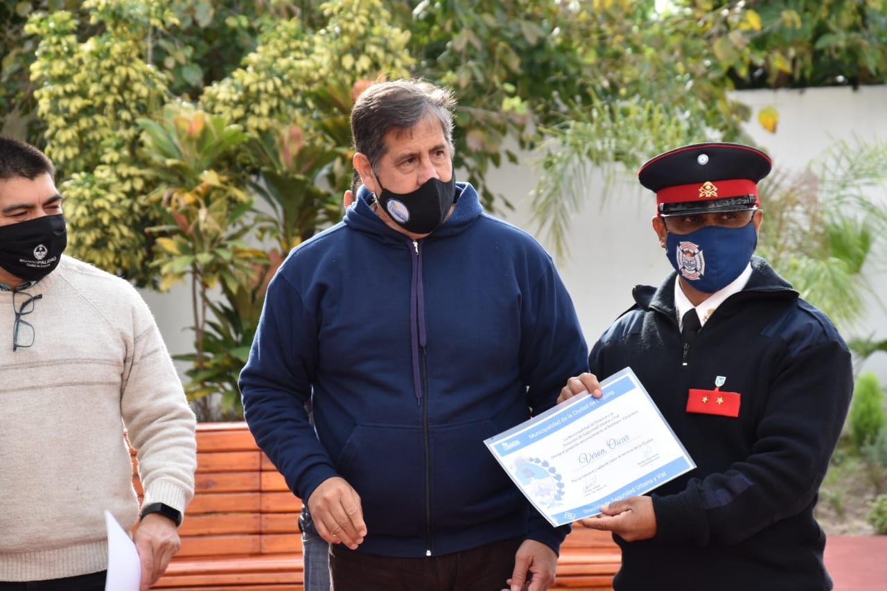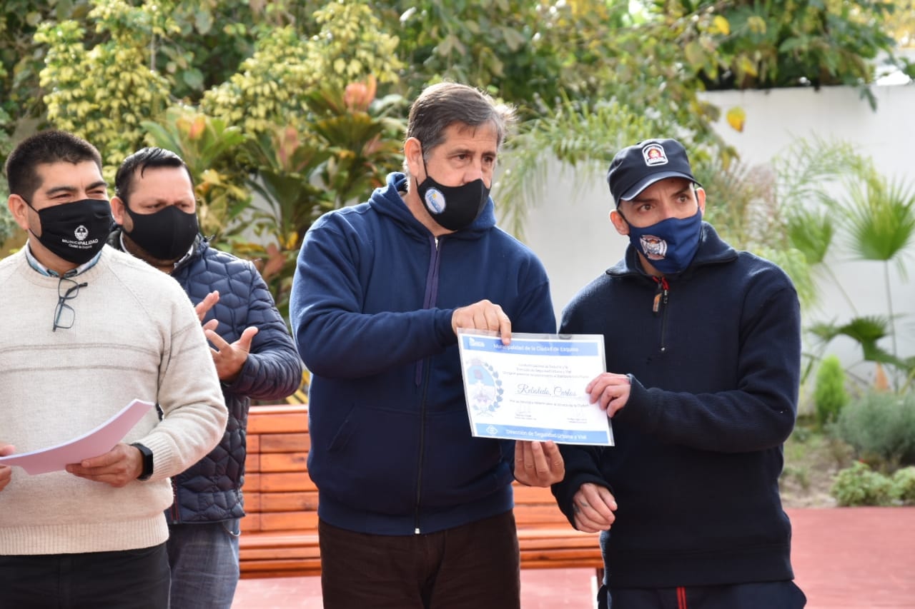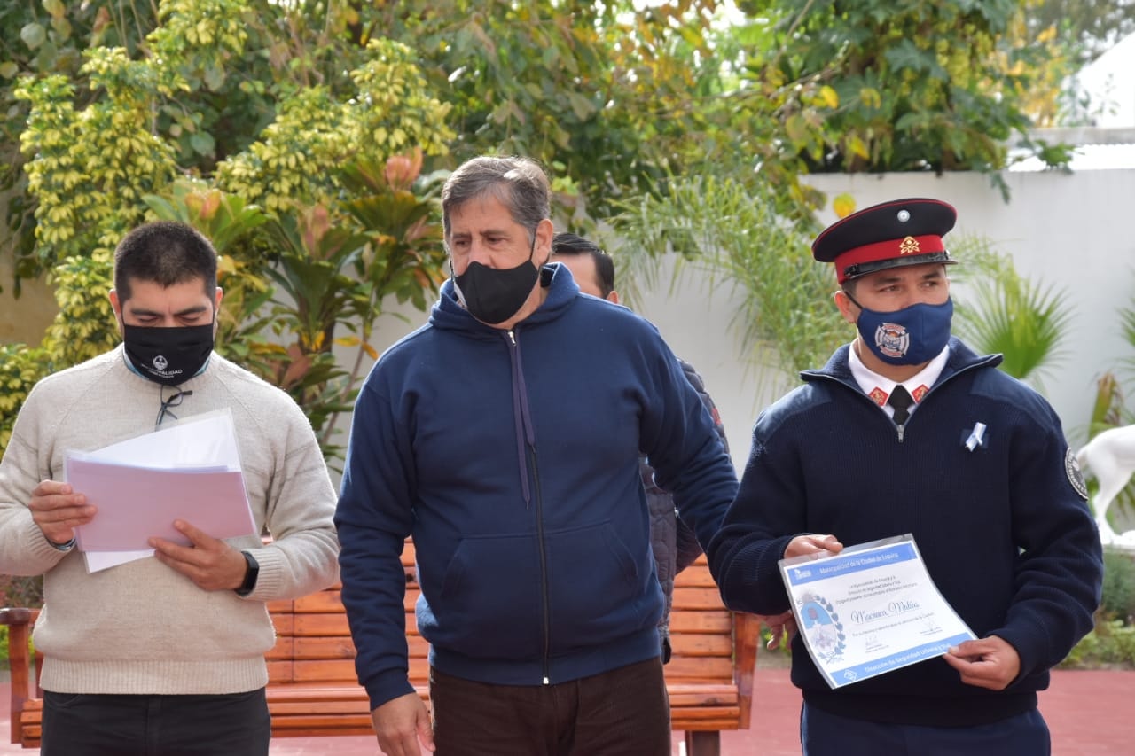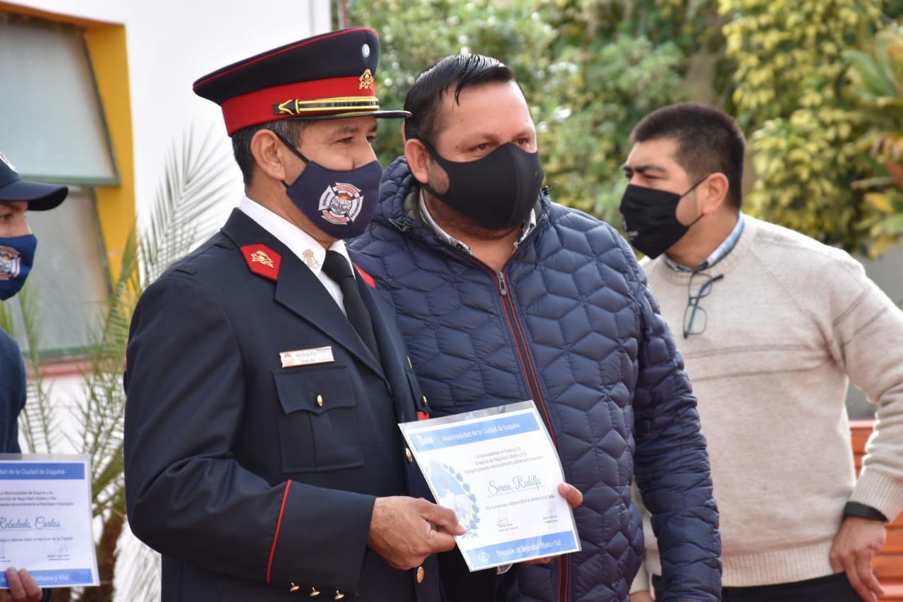 El Intendente Municipal Prof. Hugo Benítez junto a la Dirección de Seguridad Urbana y Vial, entregaron reconocimientos del municipio, a los Bomberos Voluntarios de Esquina en su día.