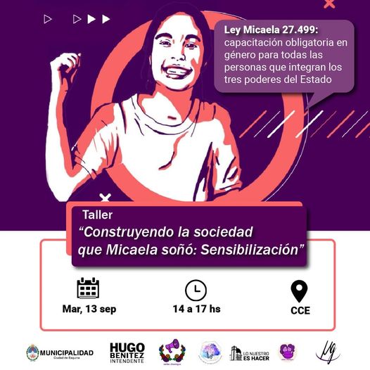 Este martes 13 en el CCE a partir de las 14 hs. se llevará a cabo un taller organizado por la la banca de la mujer perteneciente al HCD.Es la primera capacitación en nuestra provincia y contaremos con la presencia de los padres de Micaela.