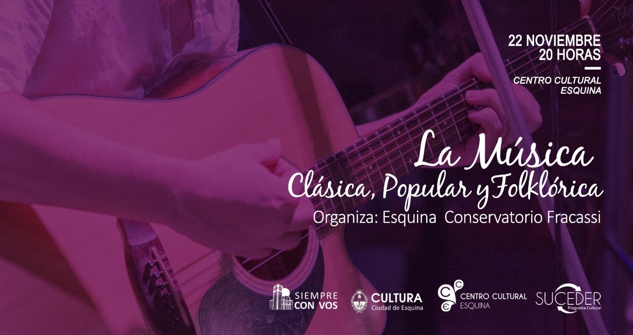 📯Este evento es organizado por el Conservatorio Fracassi filial Esquina, los estudiantes harán una demostración de todo lo estudiado, en el año en curso: música clásica, popular y folclórica.