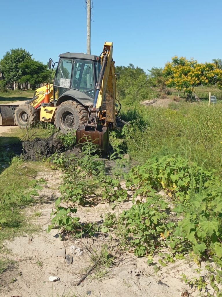 Personal de la Secretaría de Obras y Servicios Públicos se encuentra realizando trabajos de zanjeo y limpieza en la intersección de las calles Noaim Ortigoza y Blanca Sánchez, con el objetivo de mejorar el escurrimiento del agua y las condiciones del sector.
